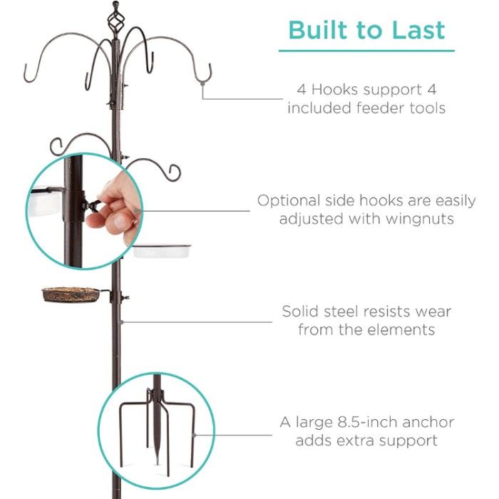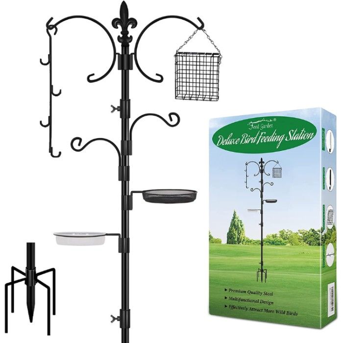 This feeding station allows you to hang multiple feeders from the various hook points along the pole and can even accommodate seed trays or other dishes for water. Additionally, this durable, weather-proofed steel construction provides everything birds need in one convenient location.