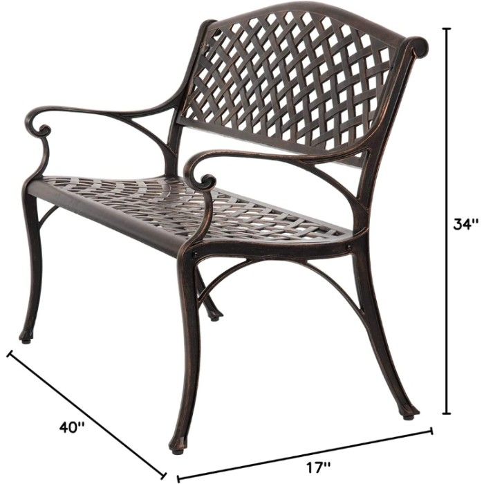 With its distinctive basketweave design and lightweight body, this patio bench is perfect for any patio or garden setting. Enjoy its timeless bronze finish that's enhanced with a unique antique patina for added texture.