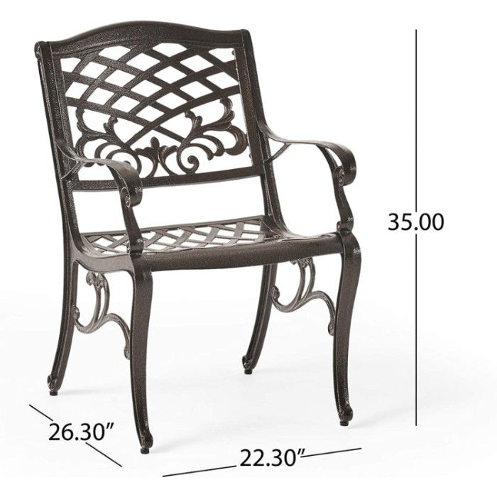 The beautiful bronze color and hollow carved design make this patio set a chic addition to any backyard or patio. Plus, the adjustable foot pads ensure that the set won’t slide around unwanted, protecting your floors beneath.