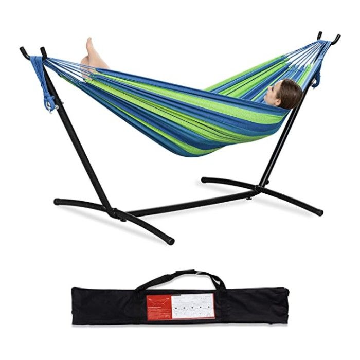 Ideal for an afternoon picnic, backyard gathering, or relaxing on a lazy Sunday afternoon with your favorite book, this stylish hammock comes with all the bells and whistles so you can get to enjoyment quickly.