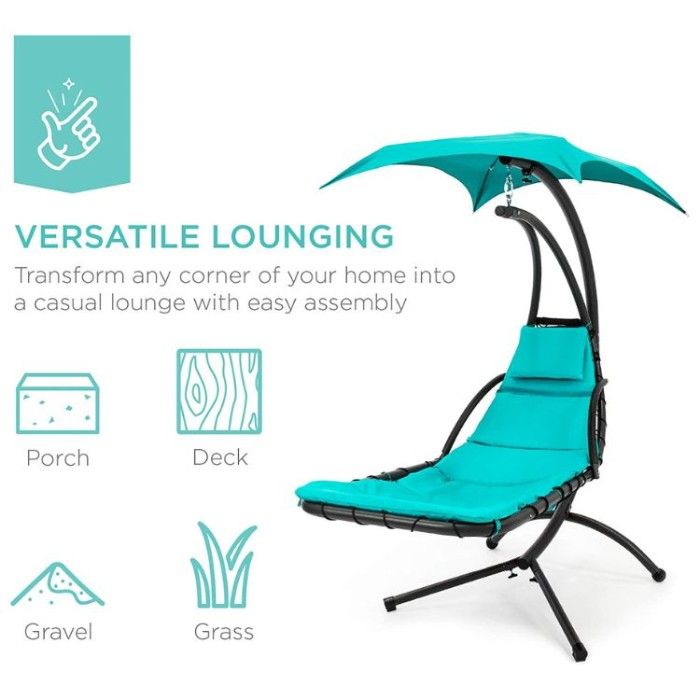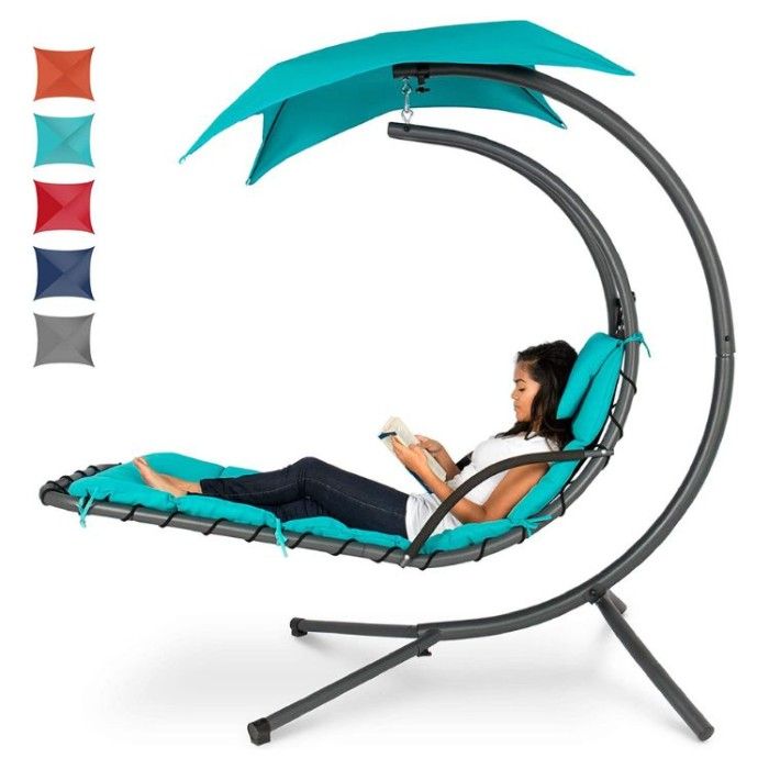 Feel like you're floating away while sunbathing with the Best Choice Products Hanging Curved Lounge Chair. This one-of-a-kind design allows you to enjoy sun protection, comfort, and ergonomic support - all in a dynamic and modern package.