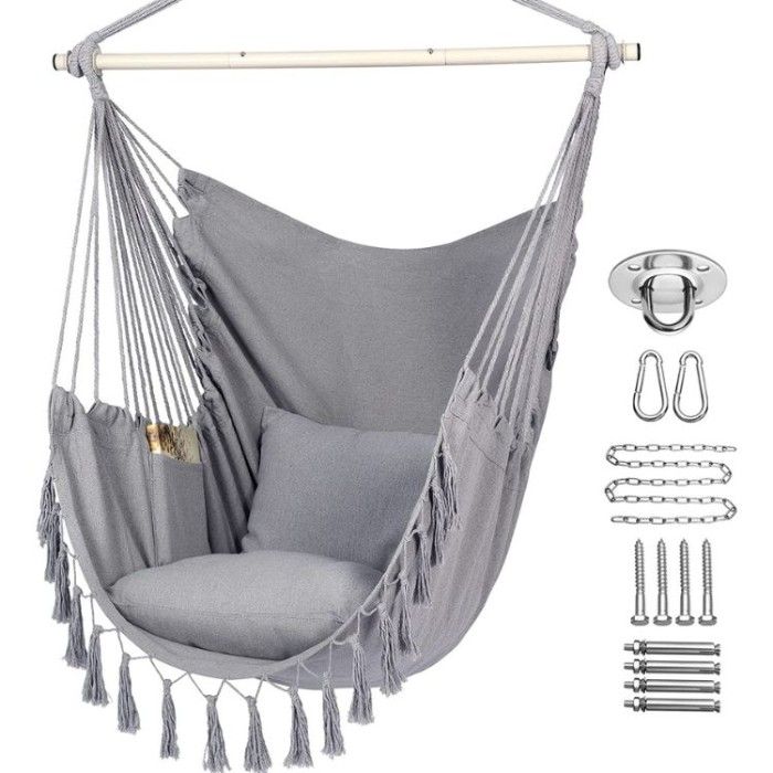 Unlike other swing chairs, this one is crafted specifically for family-friendly durability with its tightly woven PET fabric that is both colorfast and long-lasting. You'll be able to feel the cushiony softness while you chill out in your hanging chair, as this lounge chair is designed to provide maximum comfort during relaxation.