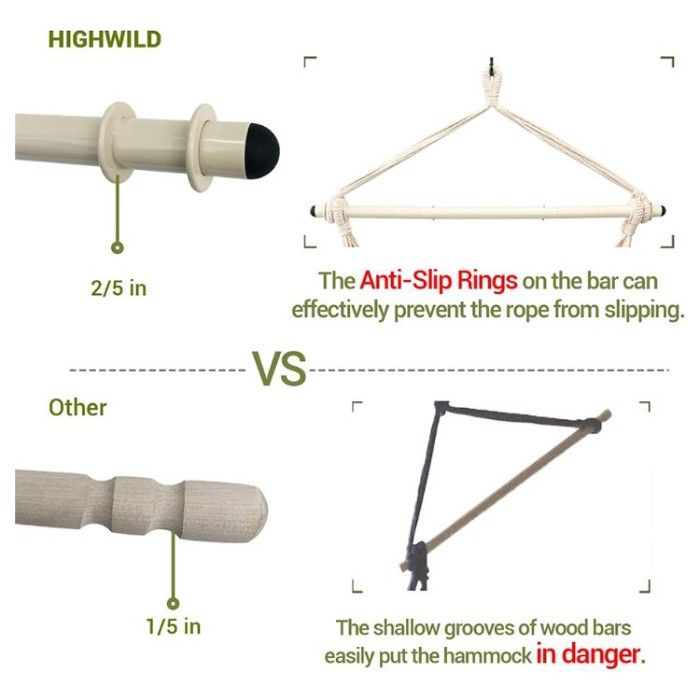 If you're looking for swing chairs that bring both design and strength, the Highwild Hanging Hammock Chair is your go-to piece. This hammock chair is adorned with a sturdy steel spreader bar that not only makes it more stable but also offers reliable support to hold up to 500 lbs.