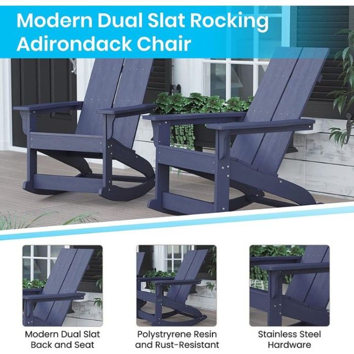You'll enjoy the addition of some modern outdoor decor with the elegance of Flash Furniture's modern Adirondack chair. With its polystyrene resin frame and streamlined double slat seat, this modern Adirondack chair brings modern plank style rear legs and a high-end look without all the traditional upkeep of the original Westport chair - it's UV treated to protect against fading, rust-resistant, and stainless steel metal screws ensure it will not rot, chip or peel easily.