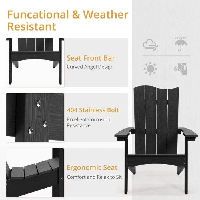 It's made from high-quality weatherproof material that won't splinter, crack, chip, peel, or rot when exposed to the elements - so you can enjoy it year after year. To make things even easier, this modern Adirondack chair comes with clear instructions and marine-grade quality hardware that makes assembly super simple.