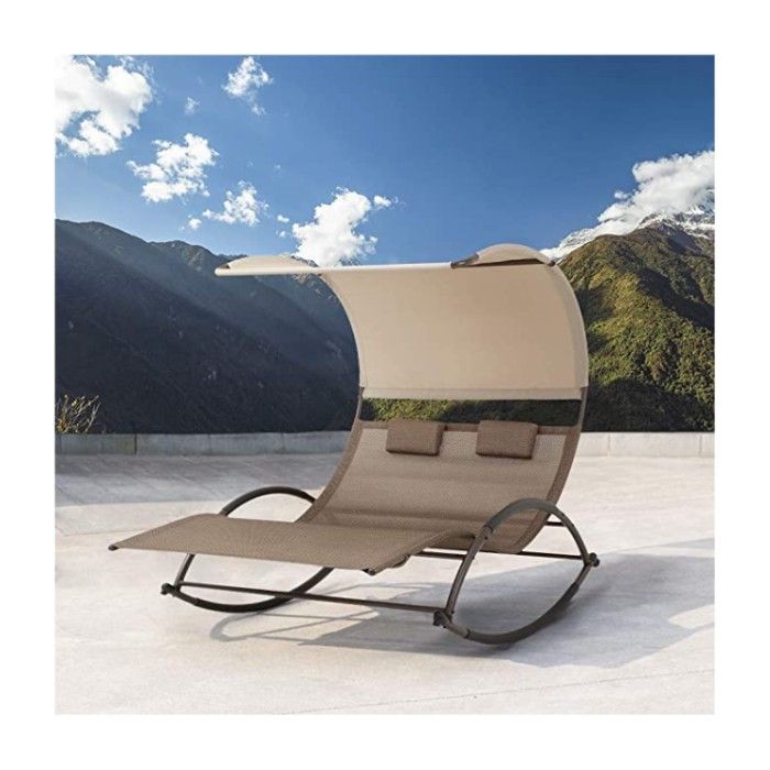 This outdoor double chaise lounge, coming with an adjustable canopy is essential to enjoy outdoor moments any time of day. The canopy of these outdoor loungers is made of polyester fabric, so you don't have to worry about frequent maintenance and your outdoor space can stay looking good as new.