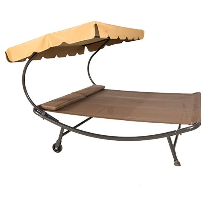 With two wheels making this piece of furniture portable, you can easily move it around all your backyard oases. Whether you’re reading a good book or just taking in some sunshine, the Sunnyglade Patio Double Chaise Lounge Bed with Canopy will hug you in comfort and style.