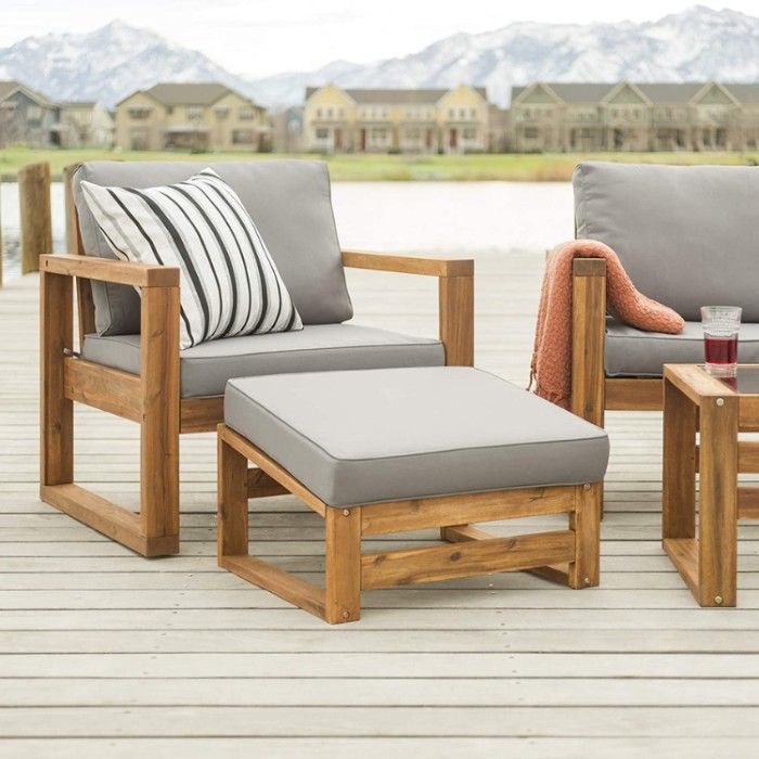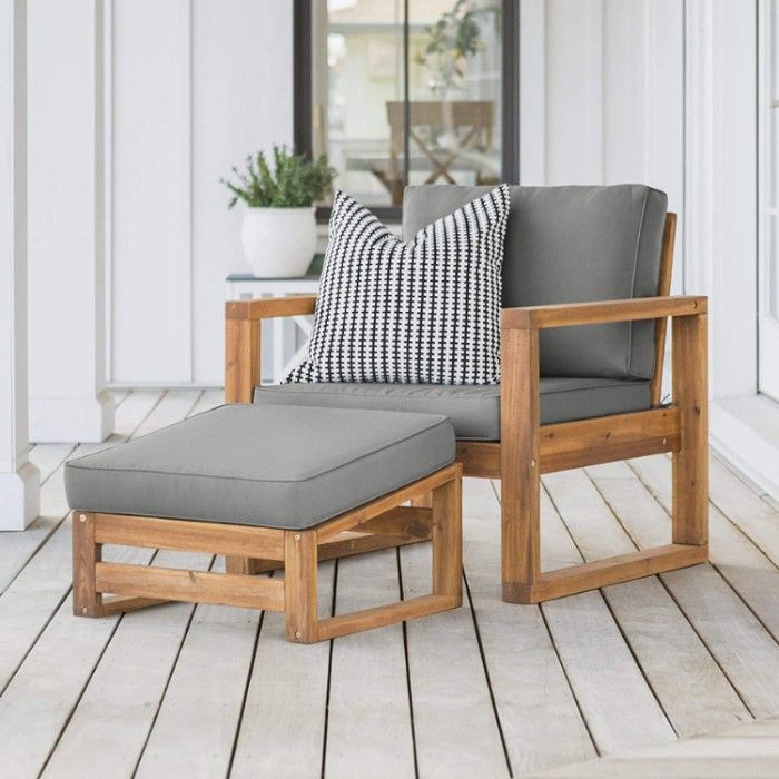 When you want to update your exterior decor with a stylish seating space, look no further than the Walker Edison Sorrento Modern Wood Chair and Ottoman Set! Whether you place it near the pool or on the porch, this attractive piece is sure to make your home feel more inviting all year round.