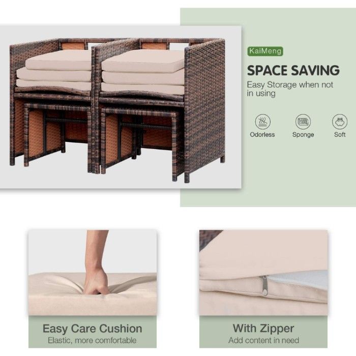 Create a backyard oasis with the KaiMeng 4-piece rattan set! Whether you're enjoying a peaceful morning cup of coffee on your balcony or hosting an outdoor dinner party, this chic and comfy set is perfect.