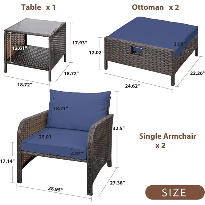 It can provide you with superior comfort due to its comfortable cushions and seats. What's more, this set is lightweight and simple to put together. It’s all made with high-quality wicker material and rust-free metal frames - meaning no fading and better durability so that your furniture will look as good as new for years to come.