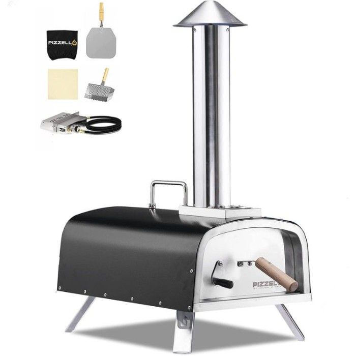 Plus, it already includes all the necessary accessories like a gas adaptor, 9.8” stainless steel pizza peel, cordierite pizza stone, and detachable wood tray - no extra money needed! So if you're seeking an awesome outdoor pizza oven experience, this is definitely the one for you.