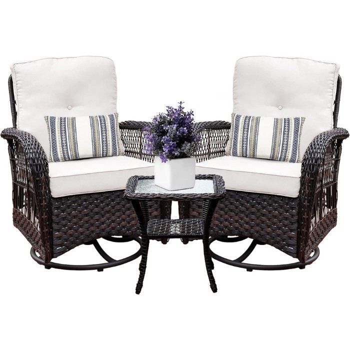 Get ready to enjoy the perfect summer evening with the top space patio swivel rocker set. The 360-degree swivel chairs are the ultimate in relaxation and comfort, allowing you to take in the beautiful surroundings as you sit back and relax.