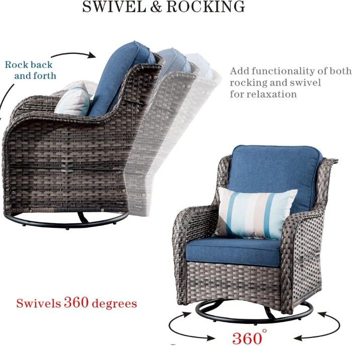 With soft cushions, durable materials, and a sturdy design, the swivel rocker patio chair is exactly what you need to create an inviting outdoor space that's perfect for unwinding after a long day.