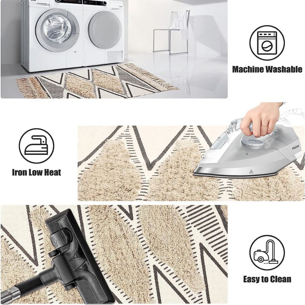 What’s more, it’s super easy to care for. You can vacuum-clean it, machine-wash it, or hand-wash this beautiful piece of art without worrying about damaging its delicate fibers. Let the Leevan Boho Geometric Area Rug bring warmth and a sense of calm into your living space.