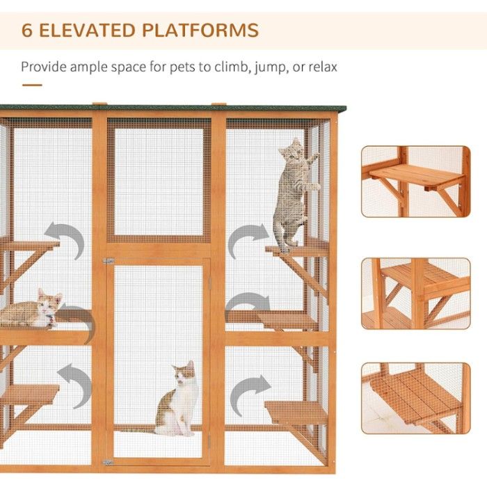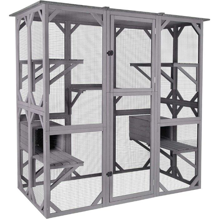 No matter where you choose to place it in your garden area or backyard, you can have peace of mind knowing your pet is protected against harsh weather conditions and any unwanted visitors. Its large 71-inch size also makes it easy to accessorize with toys, beds, boxes, and more. So your cat can truly make it their home away from home.