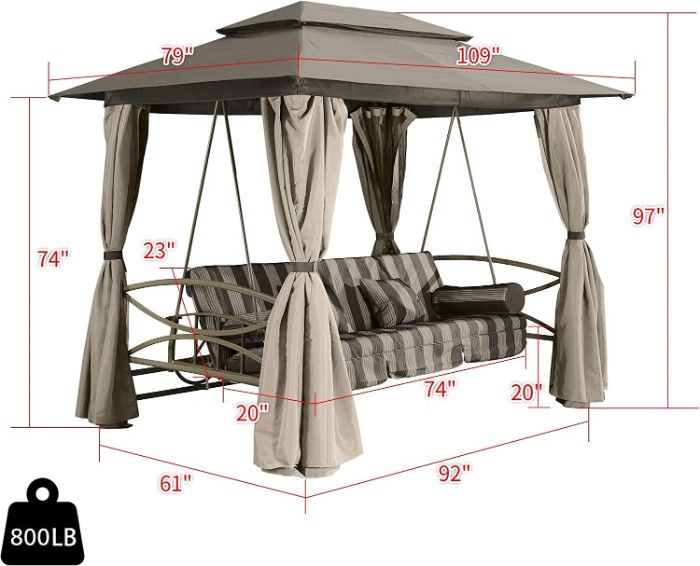 And don't worry about stability or durability - the sturdy steel frame with a powder-coated finish ensures a strong load-bearing capacity of up to 800 pounds. With filters that keep out the bugs, this swing gazebo is the perfect addition to any outdoor space.