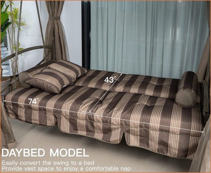 Additionally, the height of a patio swing can vary widely, ranging from 4 feet up to 6 feet or more. Beds or seats can also be added for extra comfort or larger sizes, so your measurements may differ depending on the specific style and features you prefer!