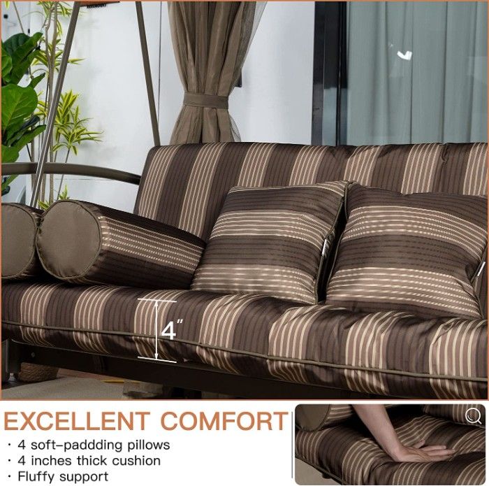 This canopy makes it possible to use the swing anytime, anywhere, from your porch or backyard to your sunroom or garden. Select this swing, enter a state of relaxation, and enjoy the outdoors in comfort and style.