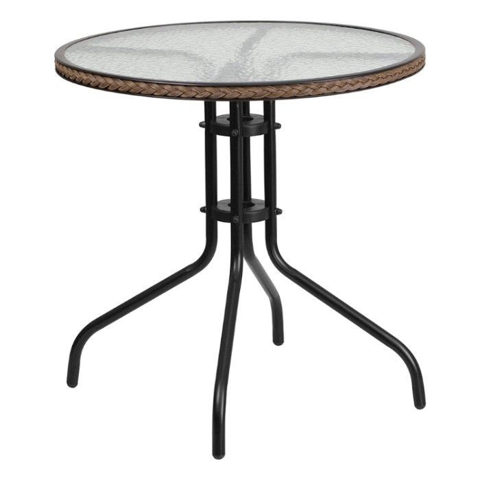 Are you looking to add a touch of sophistication to your outdoor space? Look no further than the Flash Furniture Round Tempered Glass Table. The materials, including aluminum, glass, metal, plastic, rattan, and steel, make for a durable and stylish piece.