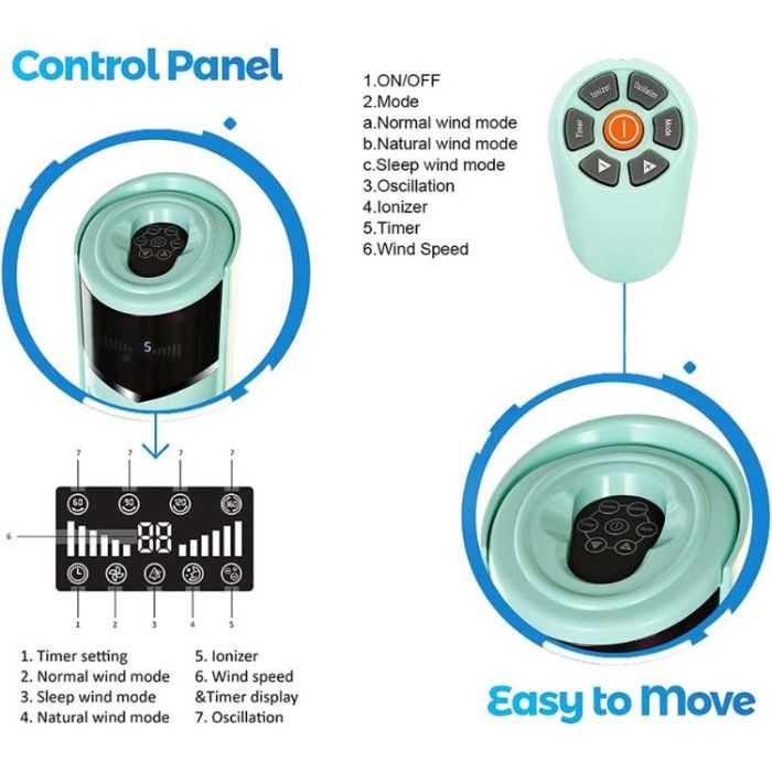 And the best part? You don't even have to get up to adjust the settings! The fan comes with a convenient remote control system, so you can control it from afar. Plus, its 360° wide angle oscillation function ensures good ventilation all around.