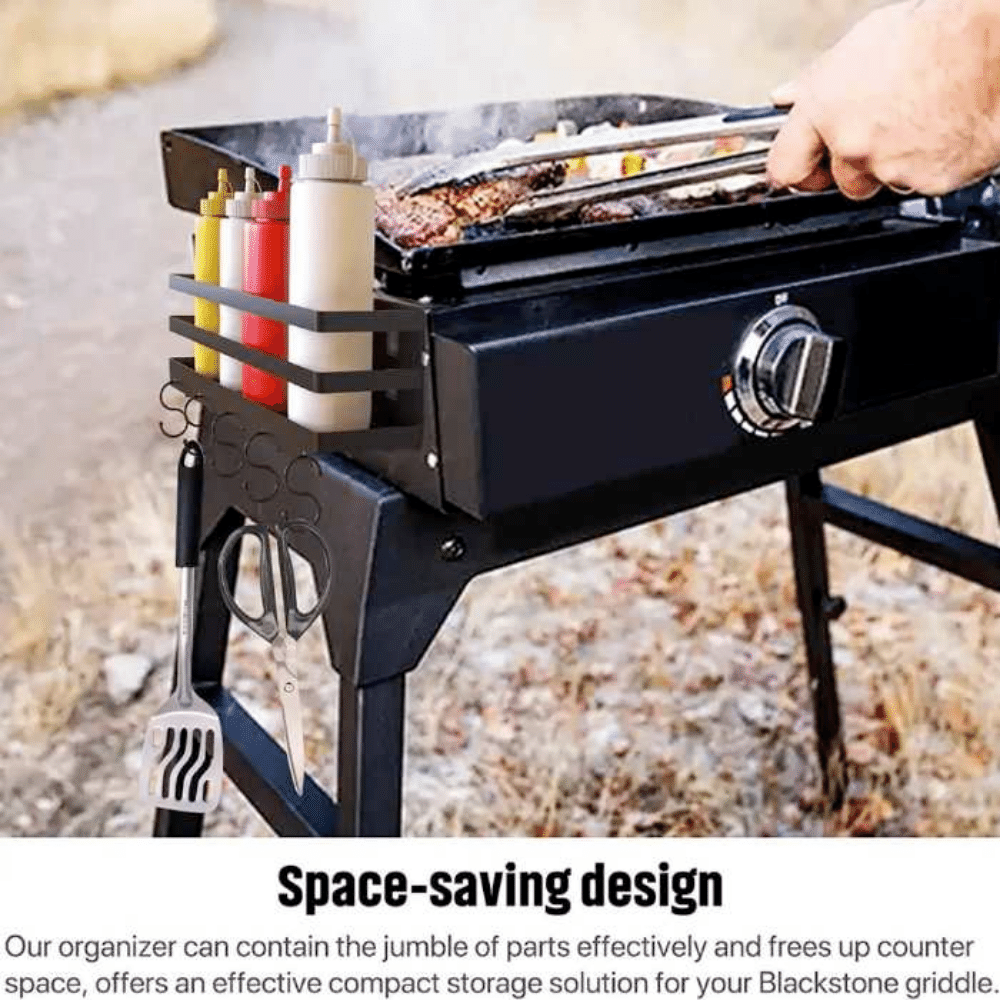 That's where the Blackstone Griddle Organizer comes in. This well-thought-out caddy helps you keep everything in tidy order, making it easy to find what you need when you need it.