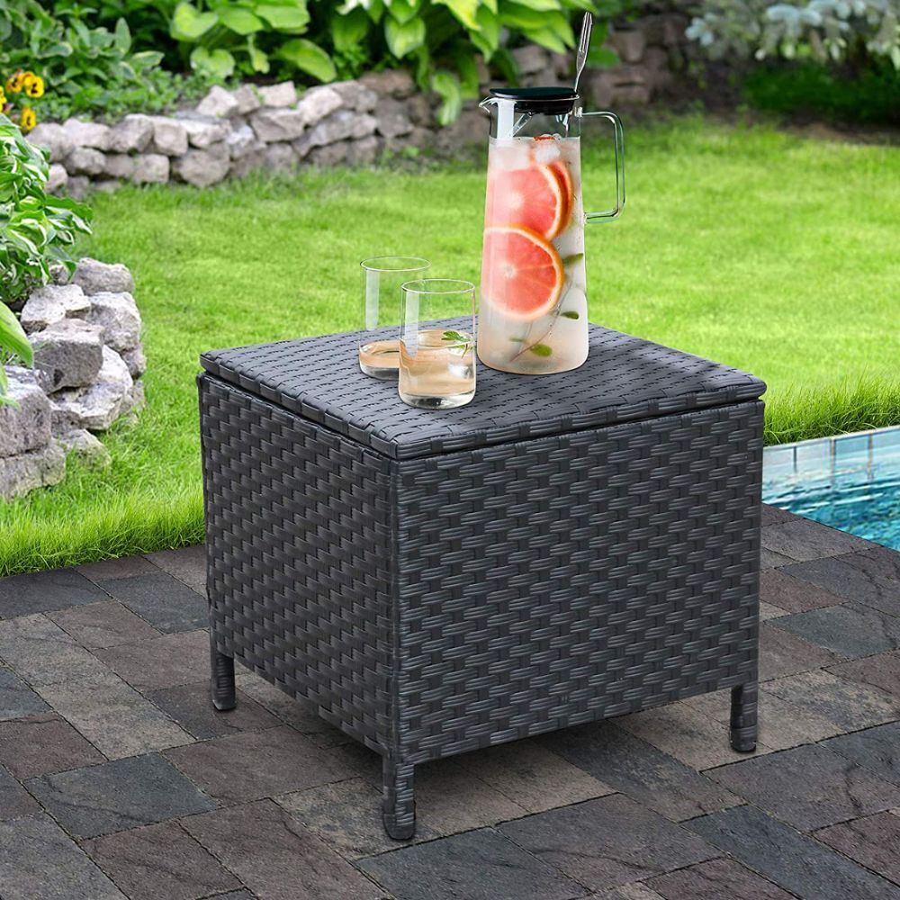 This gorgeous patio rattan garden furniture piece stands out from the rest with its multi-functional storage capabilities and added stylish tabletop material. Not only does it create an inviting atmosphere for all your backyard get-togethers, but it is also incredibly convenient. With its 27.6"D x 46.3" W x 25.2"H, it’s big enough to store several chairs and other pieces of furniture.