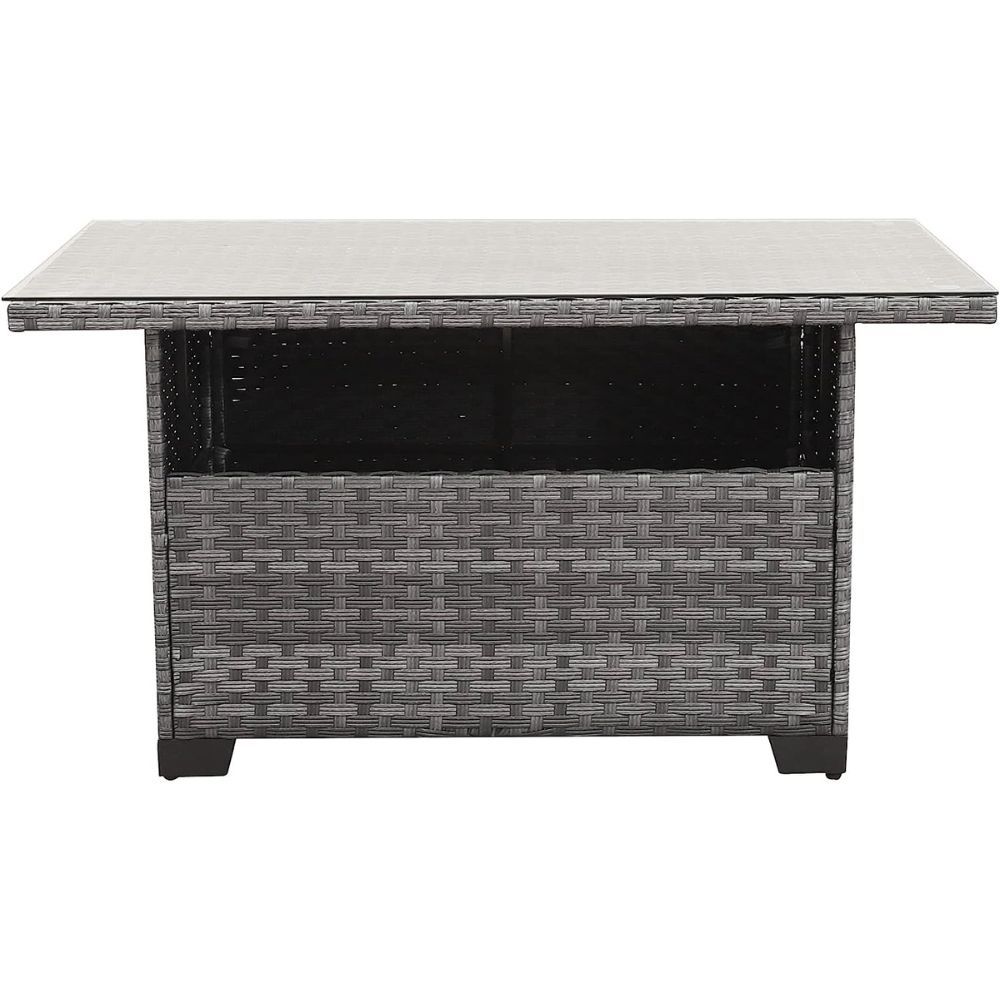 The Dimar Garden coffee table is a truly exquisite and practical piece of garden furniture. It is sure to become your favorite new addition to your patio, deck, or yard. Crafted with weatherproof rattan-style material and a sturdy steel frame, this table was made for durability and long-term enjoyment.