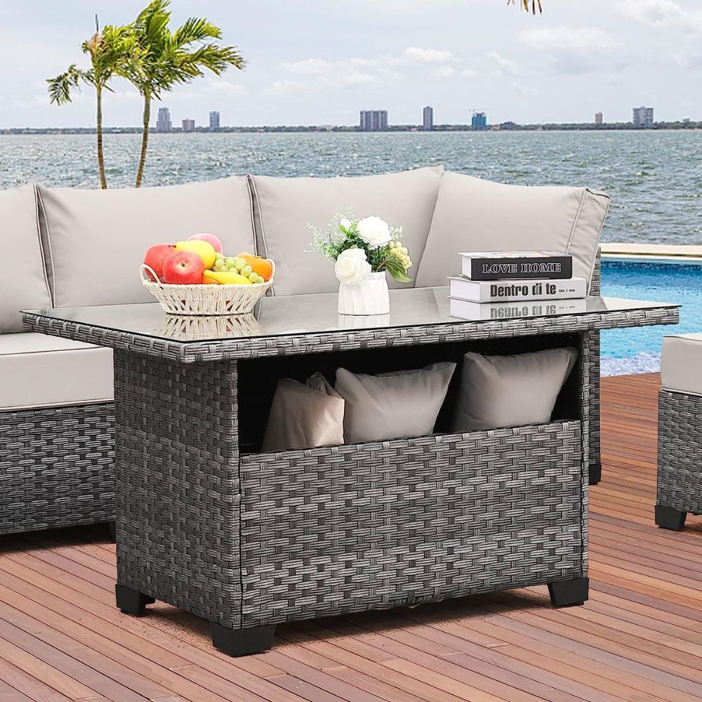 Not only does this table look beautiful in any setting, but its convenient storage option means you’ll always have somewhere to put lounge chairs and other outdoor furniture items when they’re not in use. Plus, the mixed brown wicker resin finish ensures that it will fit right into any style of outdoor setup.