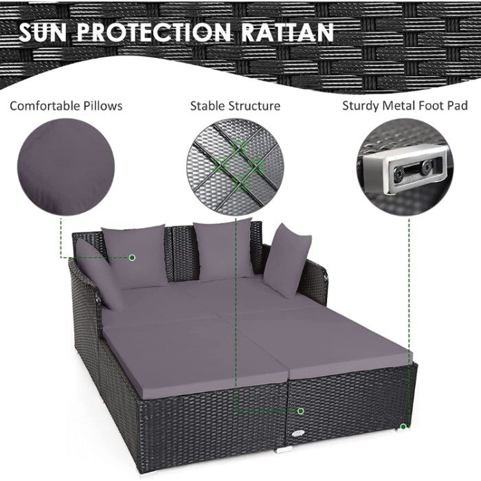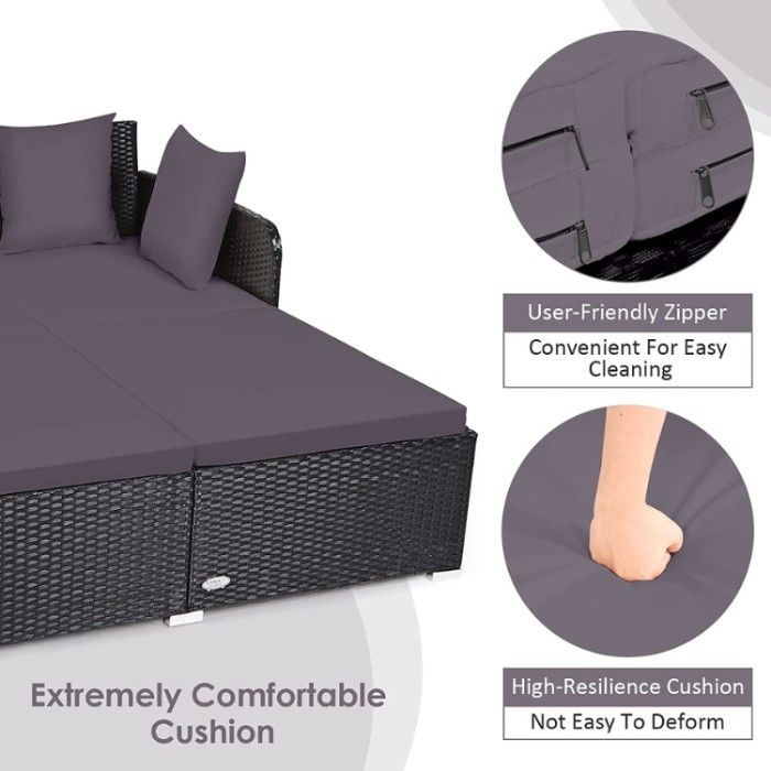 Plus, this weather-resistant rattan will last through all of those sunny days and stormy nights, making it an incredibly useful piece of outdoor furniture. Experience peace of mind as you sink into your own private paradise in the comfort of this Tangkula Outdoor Rattan Daybed.