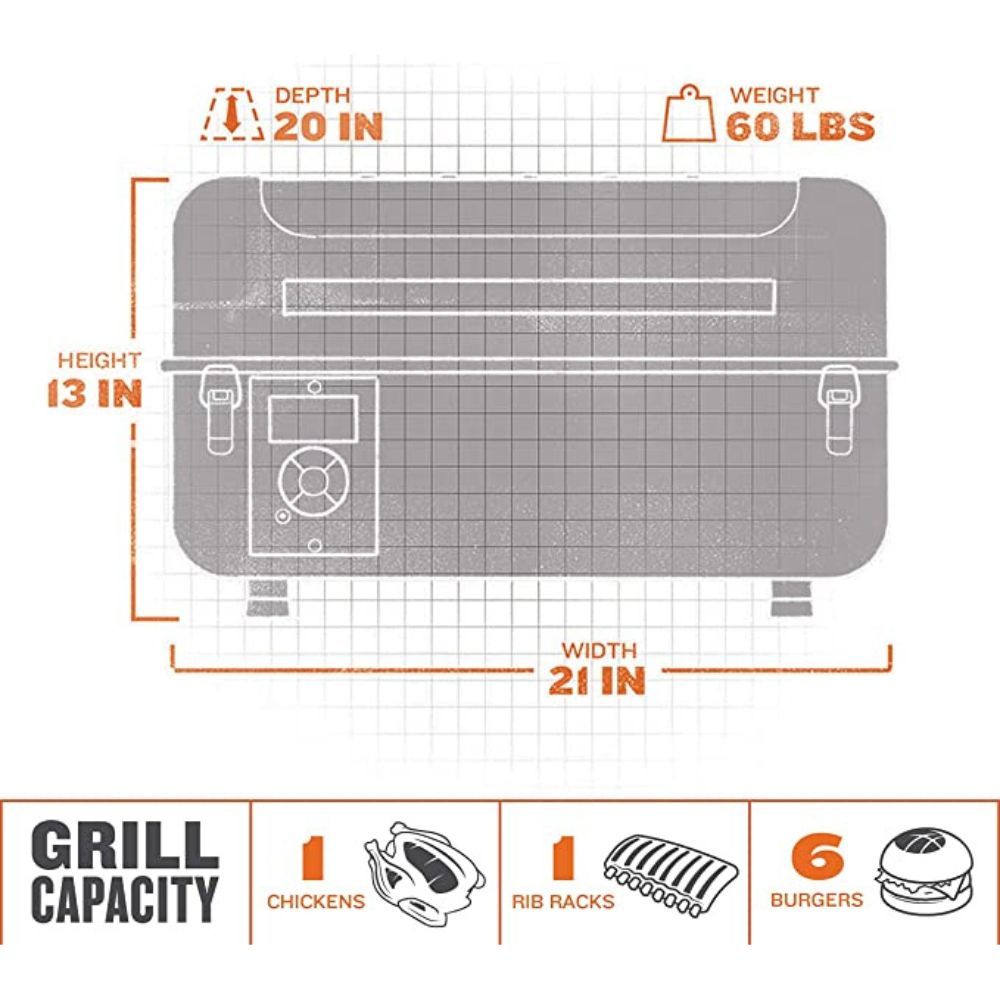 The Traeger Ranger Grill is the perfect size for on-the-go grilling, with a cooking area of 184 square inches and a pellet hopper capacity of 8 lbs.