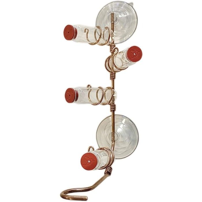 This beautiful feeder is handcrafted from copper and is designed to fit snugly on any window ledge. Its durable, stable design resists the elements ensuring that it stands up to the demands of daily use. Measuring 7” L x 4” W x 9” H, this feeder is the perfect size for any window and will provide ample room for your hummingbirds to access their food.
