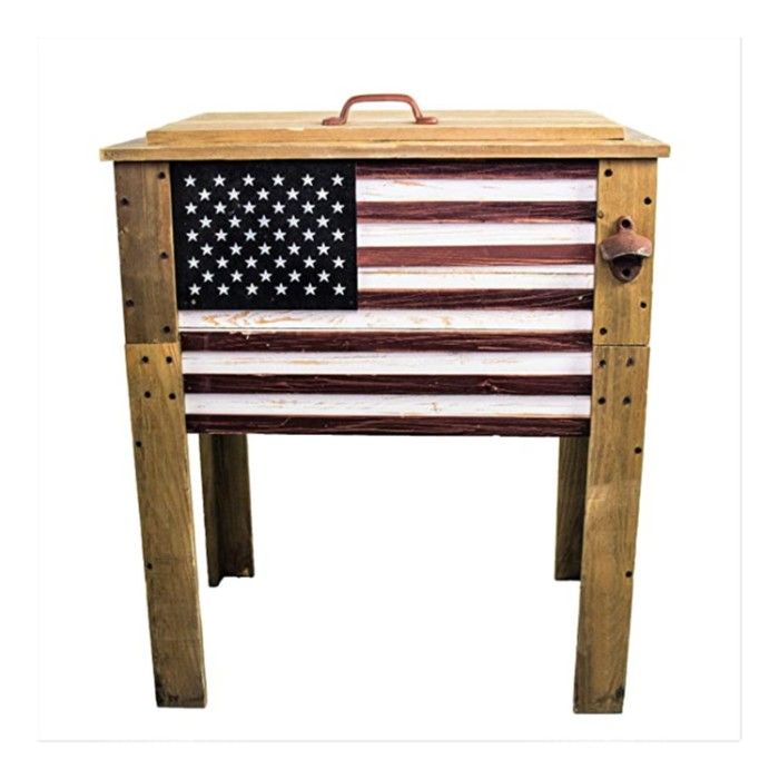 This stylish and functional rustic wood-built cooler is perfect for adding a touch of patriotism to any outdoor space. The heart of this cooler is its fully insulated interior which ensures that all your drinks stay perfectly cold, no matter how hot it gets outside.