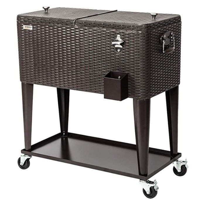 If you're someone who loves to throw outdoor parties and barbeques, the Vingli 80 Quart Rolling Cart is the perfect addition to your arsenal. With the ability to hold up to 80 quarts (20 gallons) and 96 aluminum cans, you'll be able to easily keep your drinks cold and refreshing for your guests.