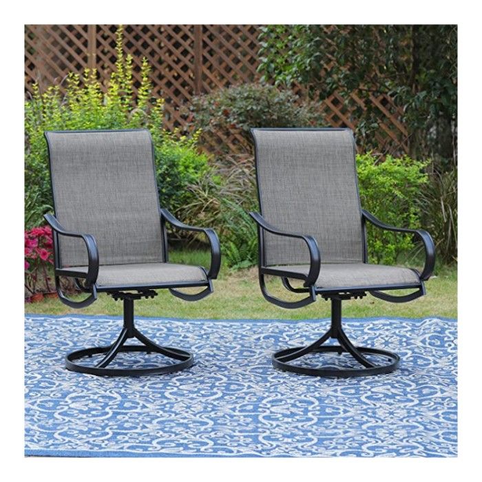 These swivel patio chairs are exactly what you need. They are designed with a metal frame covered in a powder coating and reinforced with durable textilene that is rust and fade-resistant. And the best part? They are so easy to clean with little to no special care needed.