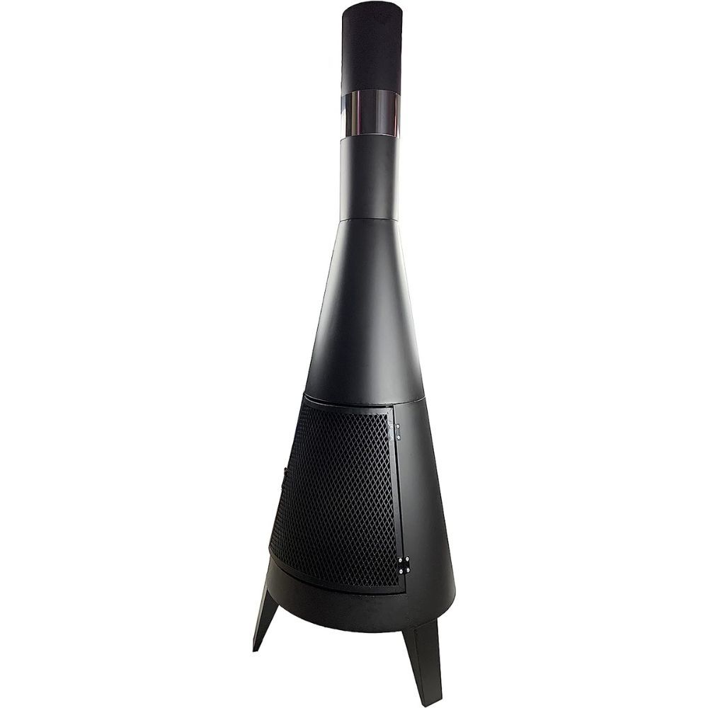 The Chic Nyst outdoor chiminea is modern, stylish, and secure. Its modern design enables clear visibility of the fire and its direction, while the sliding door's mesh screen prevents sparks, embers, and debris from flying out.