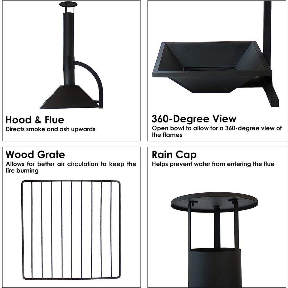 Open firepit access allows for easy firewood maneuverability and cleanup, making it convenient. You'll also love how easy it is to assemble since it comes with a 4mm thick steel 15-inch diameter wood grate with 1.5-inch gaps between the bars. So grab your Sunnydaze modern chiminea now and enjoy modern style and convenience outdoors!