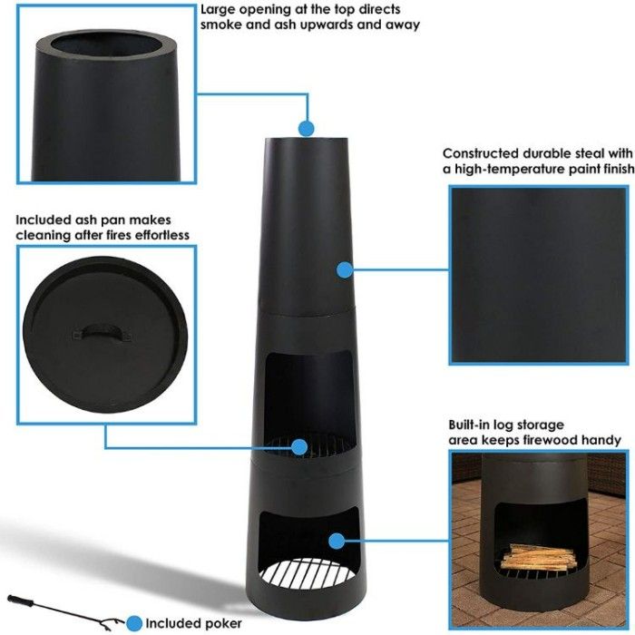 Whether you're looking to modernize your outdoor living area or just enjoy a cozy gathering space with friends, the Sunnydaze steel outdoor wood-burning chiminea fire pit is an ideal choice. Made of strong steel with a modern black high-temperature paint finish, this modern chiminea fire pit has everything you need for assembly including a handy poker and two grates.