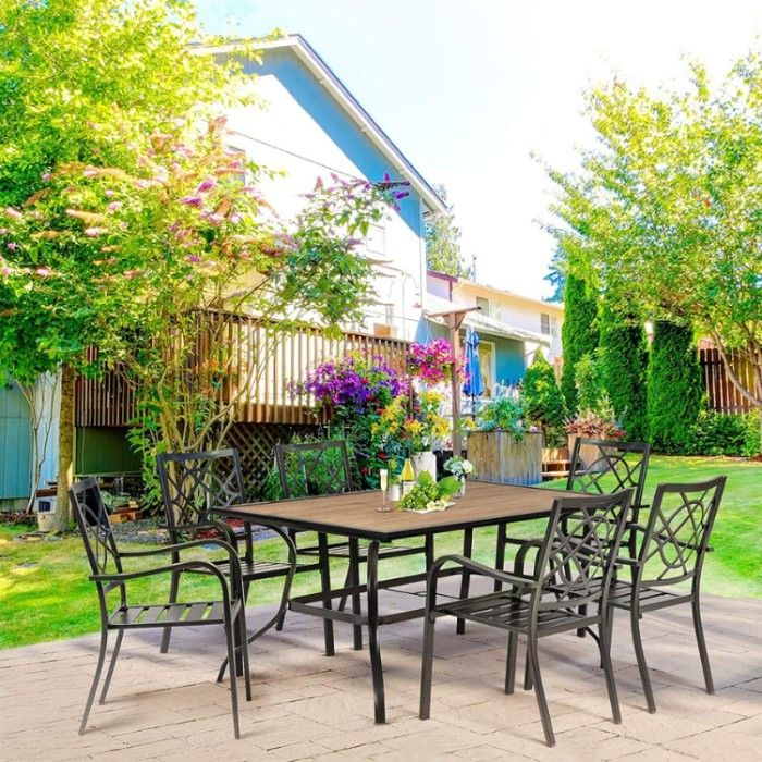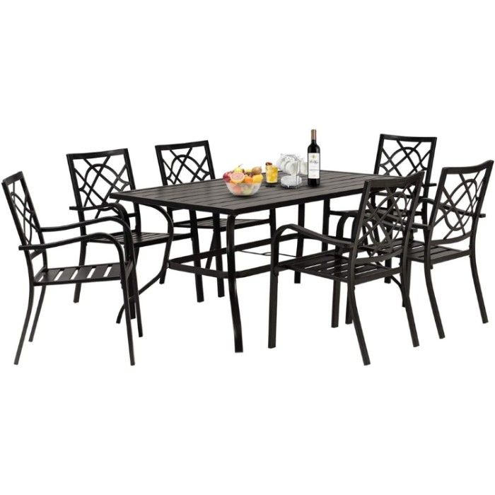 If you’re looking for a unique and stylish way to dine al fresco, the Incbruce 7-piece outdoor dining set is just what you need! It combines modern design with vintage wrought iron charm. The set includes six chairs and a rectangular dining table, offering ample seating for your outdoor gatherings.