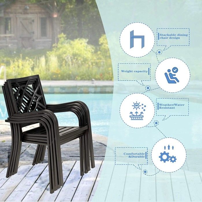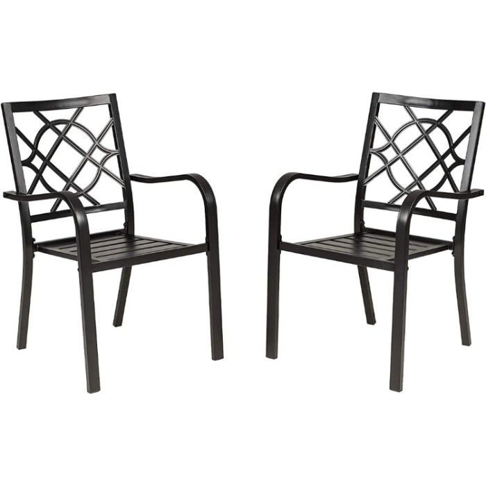 Hosting gatherings in your backyard, porch, or patio just got a lot more stylish! The Omelaza wrought iron stackable chairs take your outdoor seating to the next level with their classic design. They feature powder-coated black metal and beautiful scrollwork.