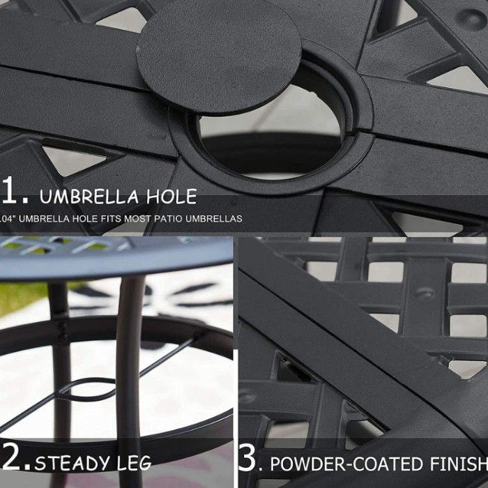 While the thick steel frame grants extra stability against winds and weather. And don’t forget about the convenient umbrella hole, perfect for those sunny days when a bit more shade is needed. The Lokatse Home Round Wrought Iron Table will be a proud addition to any home's outdoor decor!